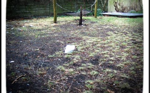 A last piece of glowing snow on a playground.