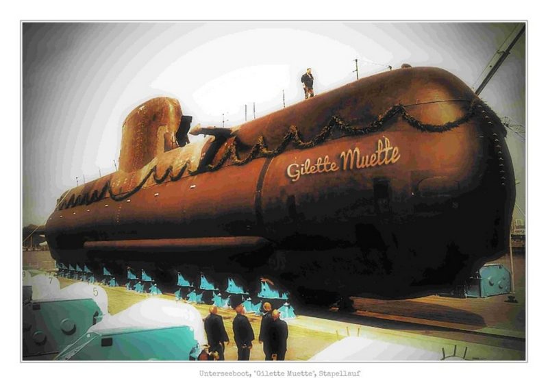 Malheureusement, nous n’avons toujours aucune nouvelle de la légendaire star française « Gilette Muette », disparue il y a quelques années après seulement trois films, à laquelle cette page Facebook est dédiée. Et vers laquelle notre Sehnsucht reste toujours aussi forte ! – Toujours ! – Toujours ! – https://wolfgangoe.de/category/gilette-muette/ Mais il est temps de rappeler l’adoration totale et fervente que lui vouaient des personnes tout à fait improbables. Ici, lors du lancement d’un sous-marin qui porte son nom. Nous espérons qu’il continue de flotter tranquillement dans ses quartiers sous-marins, parcourant toutes les mers connues et inconnues.