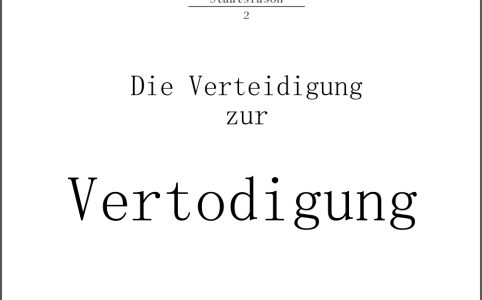 Reason of State No.2 = A word game: By replacing “ei” from Verteidigung (defense) with “o” we get a word in another word (Tod=death) that conveys in conjunction...